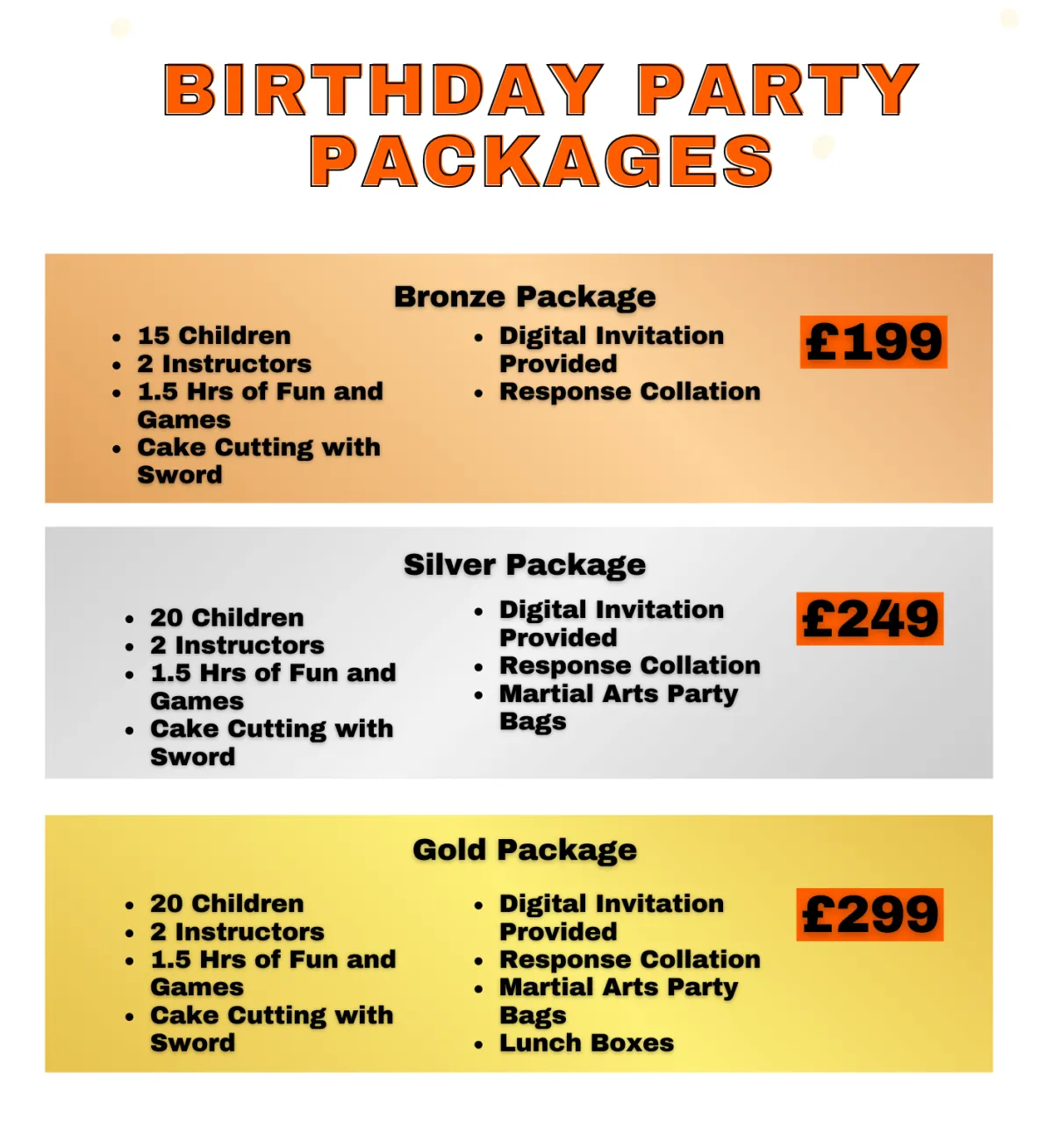 Please complete the enquiry form if you would like to book a party and we will be in contact to discuss availability